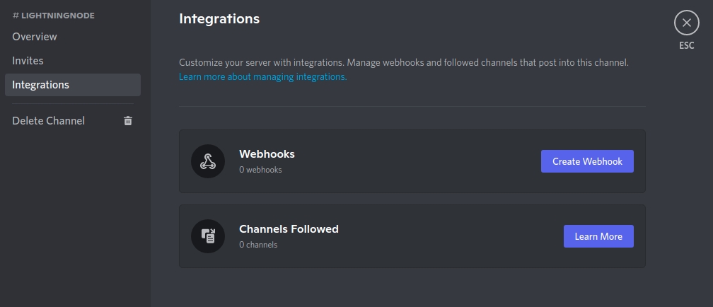 Click on Integrations and create a webhook