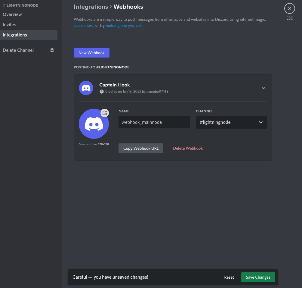 If necessary, change the name of your webhook, and don't forget to save changes.