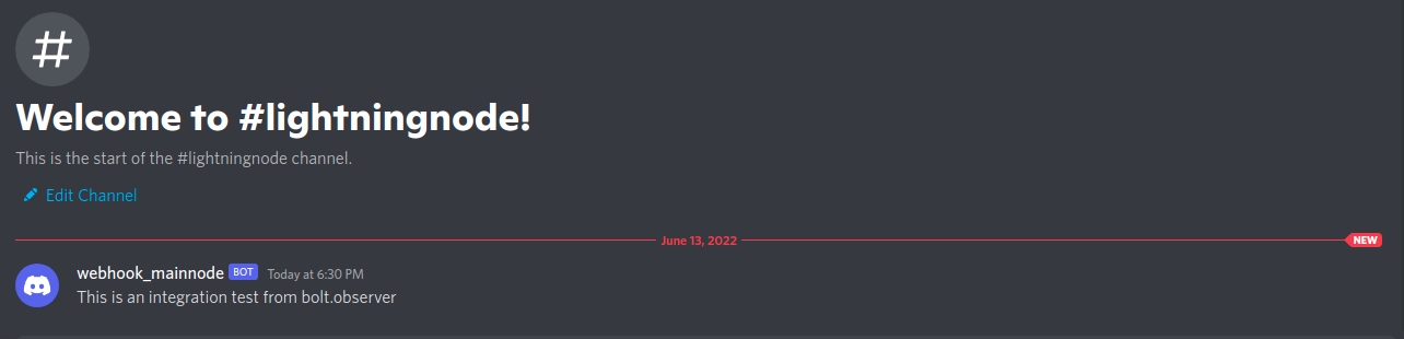 The new alert is now ready. To make sure the integration works properly, click and test and you will receive the following message in your channel or as a DM.